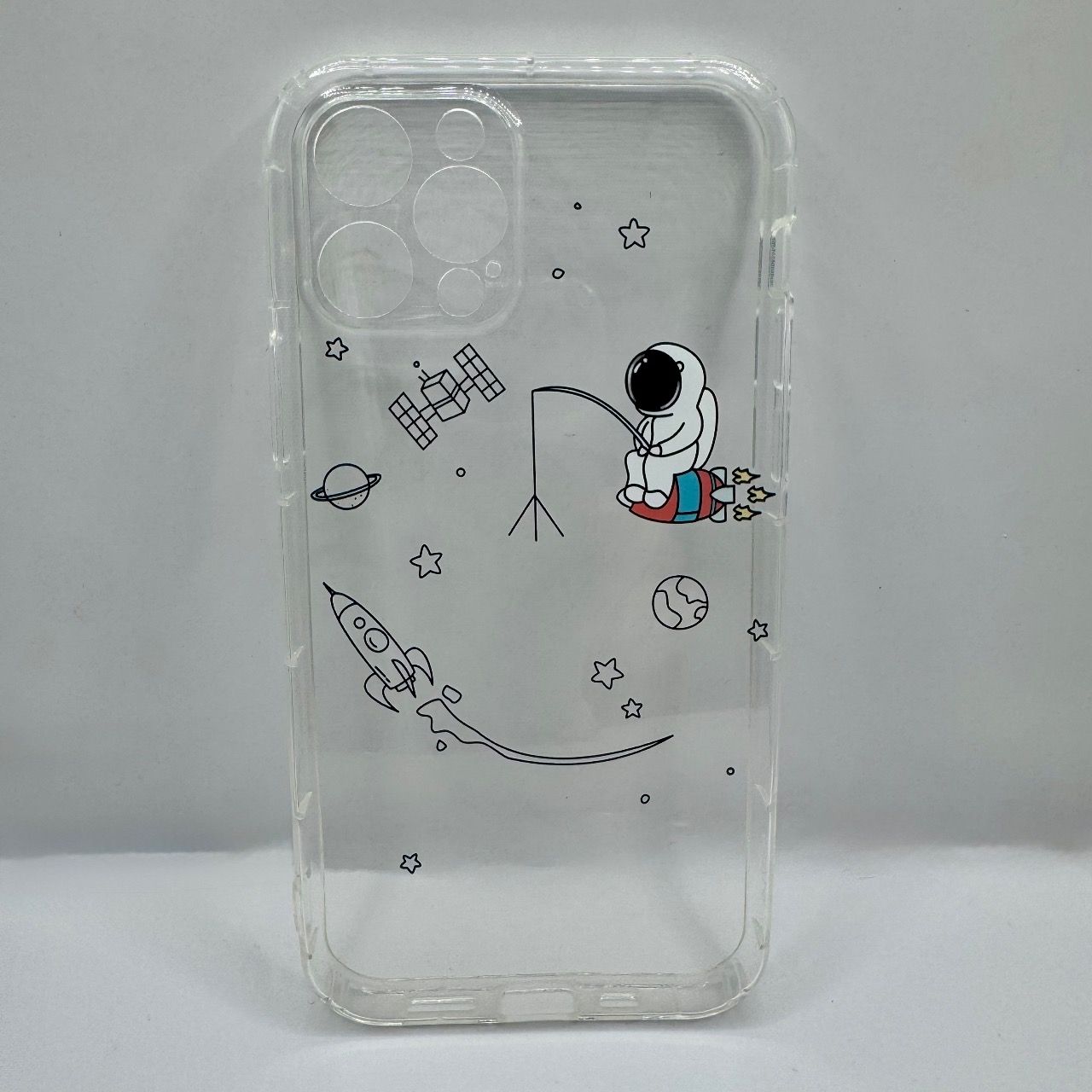 Protégez votre iPhone 12 Pro avec style grâce à cette coque transparente illustrée d’un astronaute et de motifs spatiaux.
