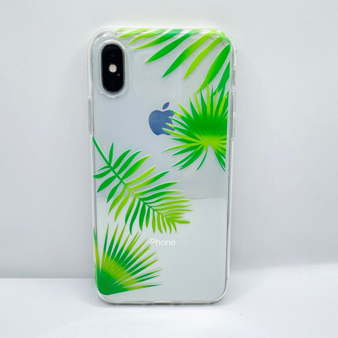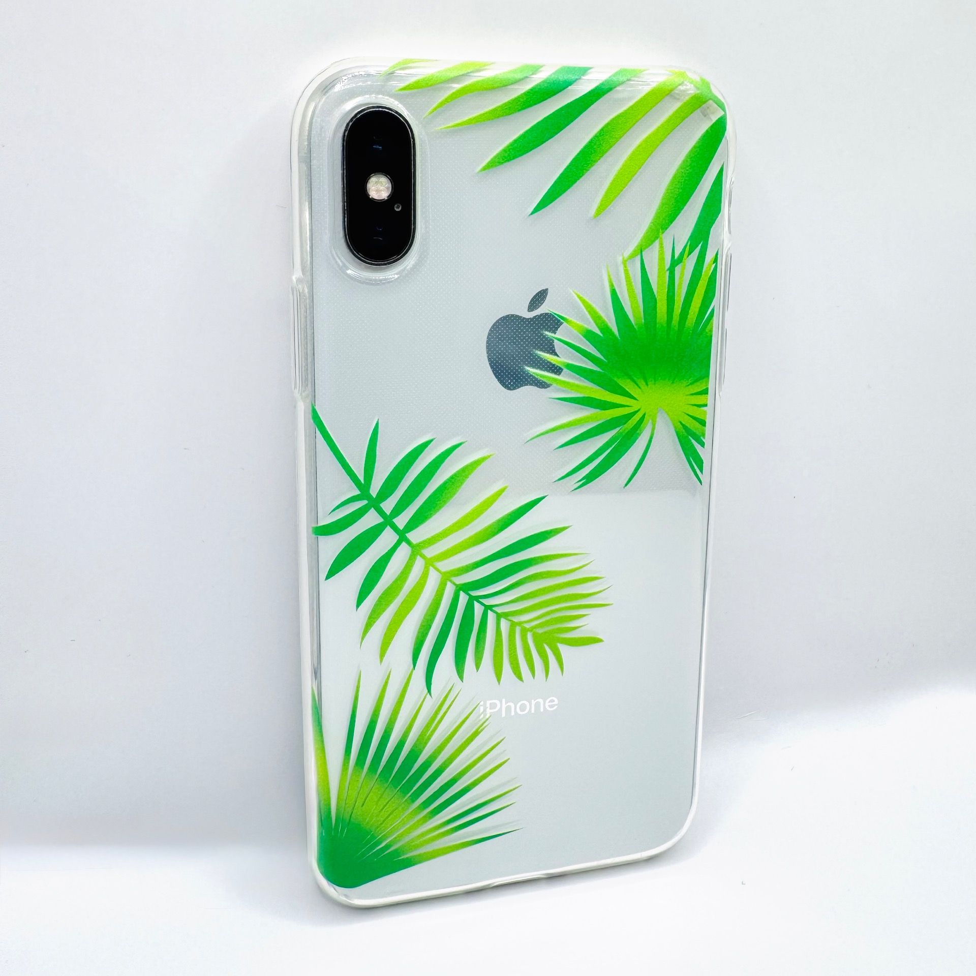 Faites voyager votre iPhone X/XS avec cette coque transparente au design tropical 🌿.