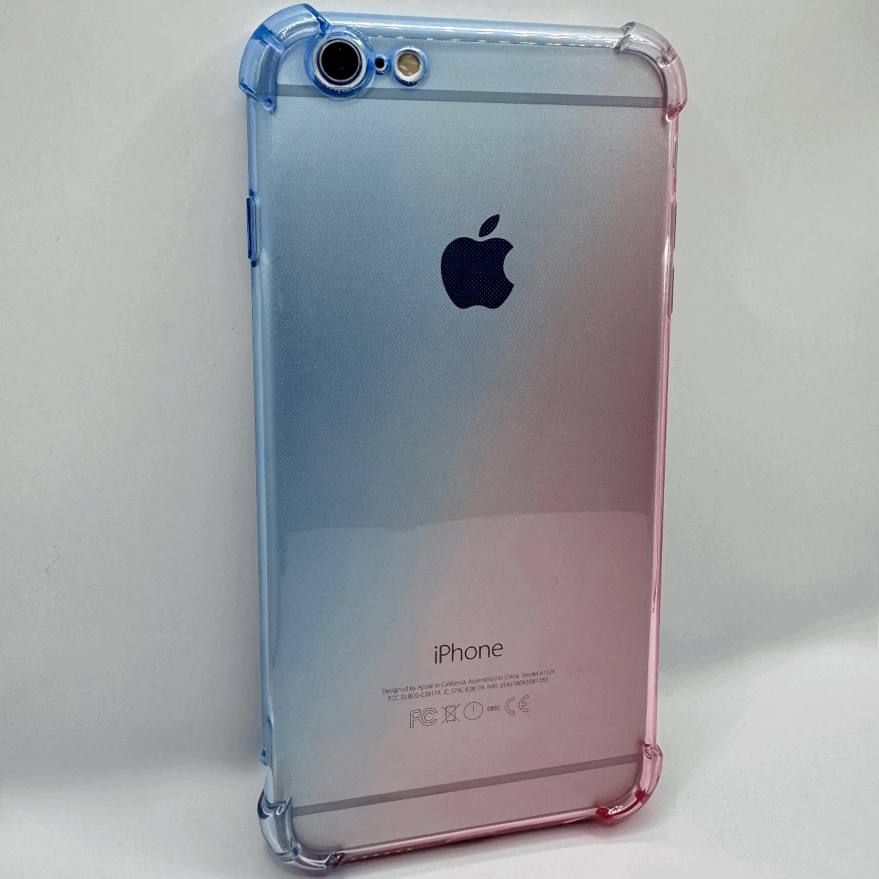 Coque iPhone 6+/6s+ Transparente – Design épuré Bleu et rose.