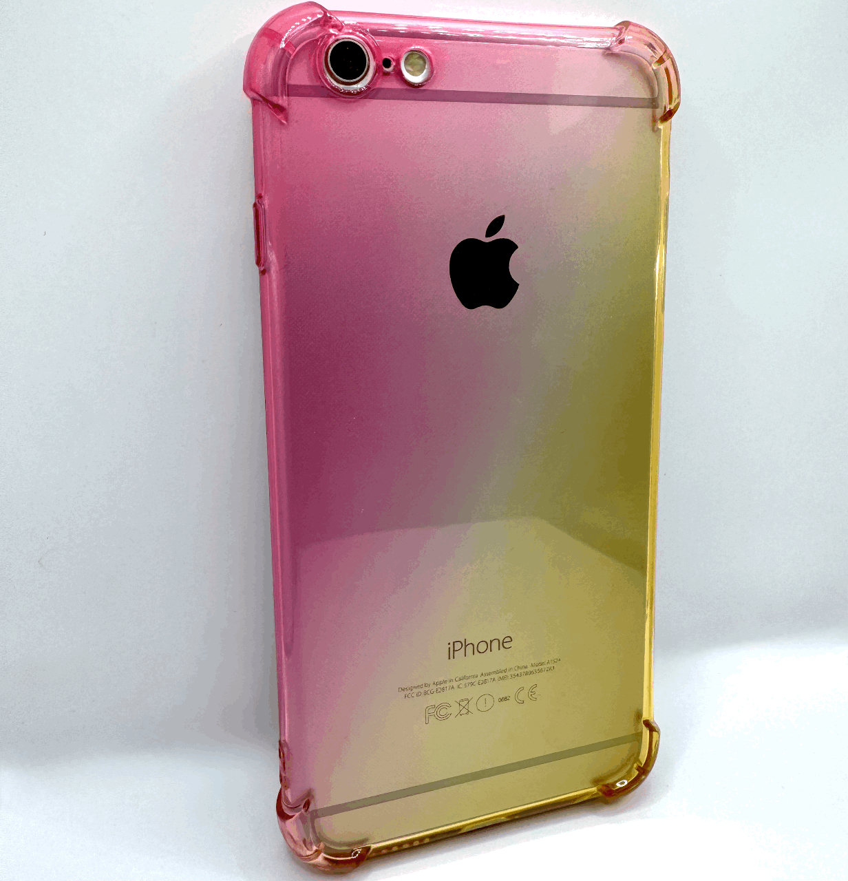 Coque iPhone 6+/6s+ Transparente – Design épuré rose et jaune.